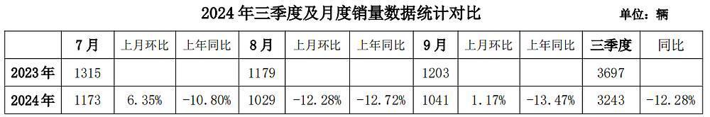 1-9月同比着落19.42%,7-8月销量超千台!2024年第三季度销量数据_3