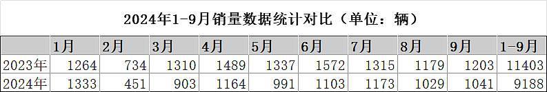 1-9月同比着落19.42%,7-8月销量超千台!2024年第三季度销量数据_1