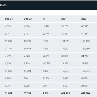 2024年,斯巴鲁在全好意思共售出 667,725 辆汽车,而去年的销量为 632,086 辆。尽管斯巴鲁旗下九款车型中有五款的销量低于以往水平,但总体销量仍有所增长。