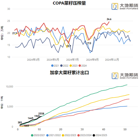 从加拿大的角度看,菜籽的出口和需求也齐超越可以,出口方面主淌若由于中国菜籽已购船期的加快出口,以保证在策略落地前能一齐发出;而加拿大国内尚可的榨利,在保险菜籽需求量的同期也支捏加菜籽价钱的回升。