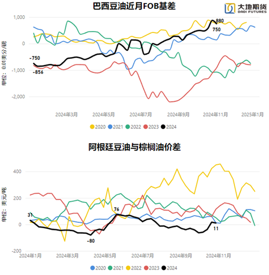 此前,巴西、阿根廷与好意思豆油价钱的捏续倒挂咱们可以以为是对专家油脂价钱的捏续性托底,而目下由于南好意思豆油基差的捏续走强,以及以南好意思为参照的海外豆棕价差的转头标明,原来为专家油脂价钱托底的南好意思,其自身一经委用北好意思订价的支配渐渐显现驱动。