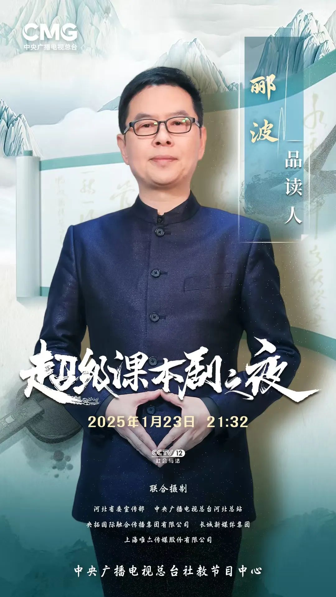 123,213,也等于腊月二十四的1月23日21:32,《超等讲义剧之夜》在CCTV-12社会与法频谈播出,陪您和孩子渡过一个语文“含量”超高的小年夜。