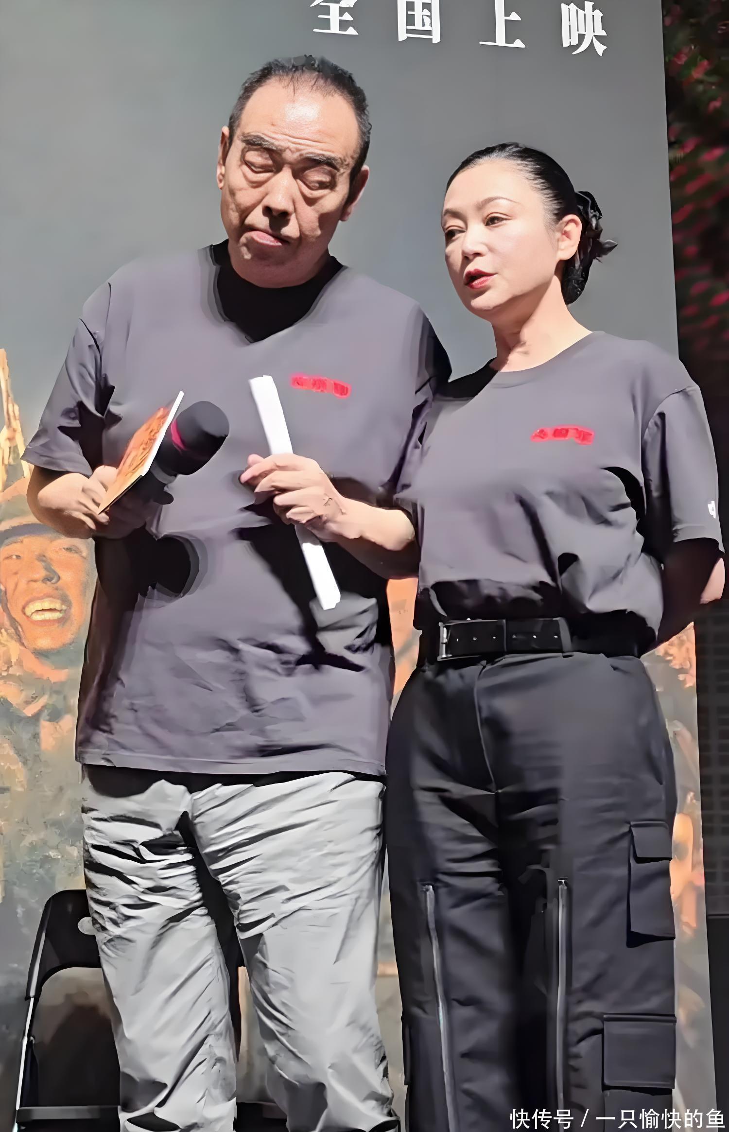 本日,陈凯歌与陈红都衣着印着电影元素的T恤,仅仅夫人俩并未与女儿陈飞宇并肩耸立。