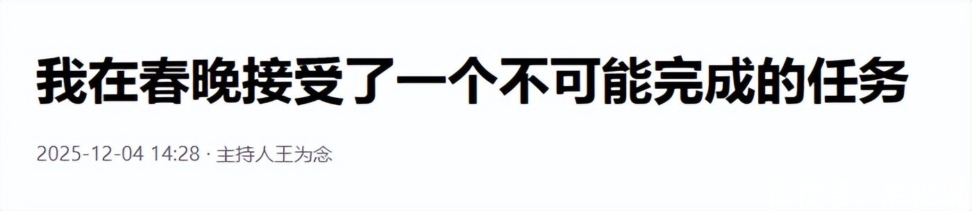 回望王为念的东谈主生旅程,从所在戏曲演员到央视春晚中枢主创,再到表象级话语节目主合手东谈主,每一次跨界齐充满未知与风险,但他总能逆水行舟,化挑战为机遇。