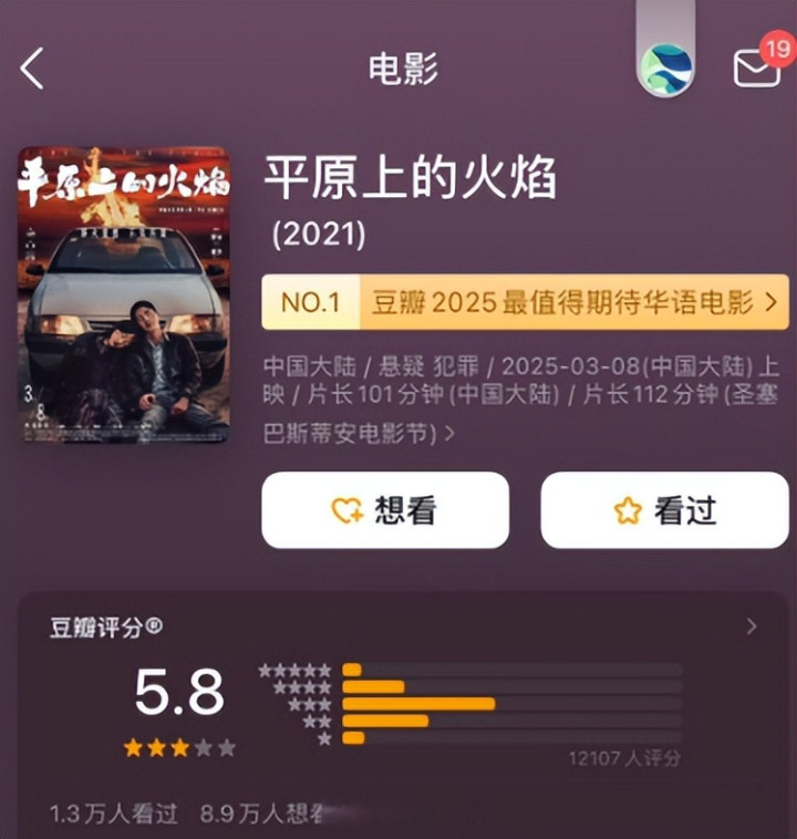 本年上了一部《平原上的火焰》只是上映了六天纵脱票房只须1500万,评分依旧不外6分。