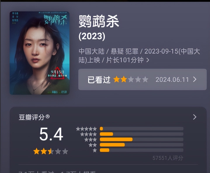 《鹦鹉杀》显而易见,评分也才5.4,票房连四千万齐没上。