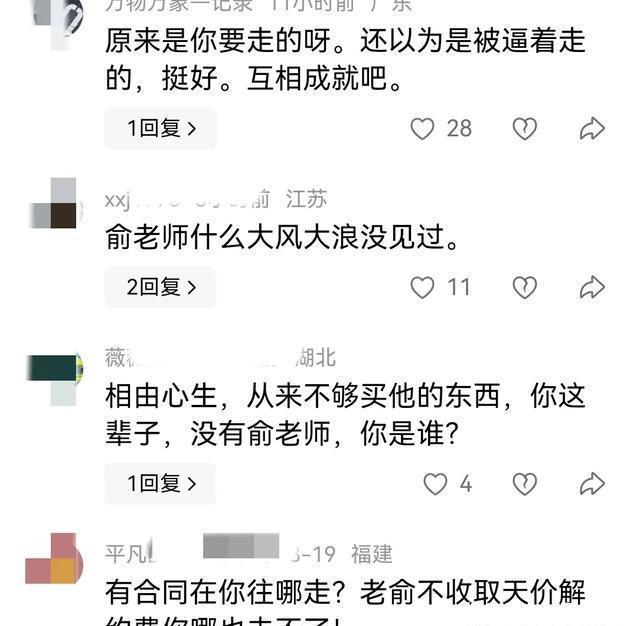 不同以往,每次董宇辉濒临网友差评时,总有一批普遍的粉丝团,在挑剔区为他发声,为他主理正义。 然而此次,董宇辉的“丈母娘”稀零莫得聚合为董宇辉辩解。 以至有东谈主说,不管是前雇主的身份,如故年级履历,董宇辉在东谈主前叫一声“俞忠实”并不为过。 这一声声“老俞”踩在了网友的神气防地上,有东谈主径直声明,看了访谈决定“粉转路”。