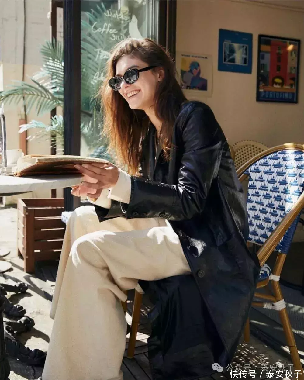 如果你的公司莫得硬性律必然须穿工装的话,不妨试着用“皮衣+阔腿裤”的叠穿,打造出一种“不作念作,不趋奉,我智商很强”的专科与高等感。
