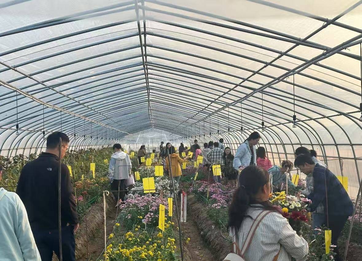 现场责任主谈主员称,基地提供剪刀、桶等器具,在市民选好采摘花束之后,还会免费进行管理与打包。春天和秋天的花最多,春天玫瑰开得多,卖得也好。现在菊花居多,下周四和周五有玫瑰花。他先容说,上周末东谈主较多,忙不外来的技术,旅客会自助扫码购买。基地八成有20把剪刀,之前旅客有列队等剪刀半个小时的情况,许多东谈主跑去商店购买剪刀。74岁的胡大姨专程从白沙洲过来买花,她是一位鲜花嗜好者,她选购了一大把,才13元。“思把花养久少量,来采簇新的。基地周围还有菜薹和棉花,来体验一下大当然嗅觉很可以。”