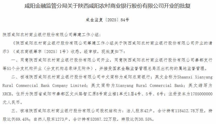 【大河财立方音问】11月26日音问,陕西金融监管局近日批复,快活落幕陕西咸阳秦王人农村贸易银行股份有限公司(以下简称秦王人农商银行)、陕西咸阳渭城农村贸易银行股份有限公司(以下简称渭城农商银行),两家银行一齐业务、财产、债权债务以过甚他各项权益义务由陕西咸阳农村贸易银行承继。
