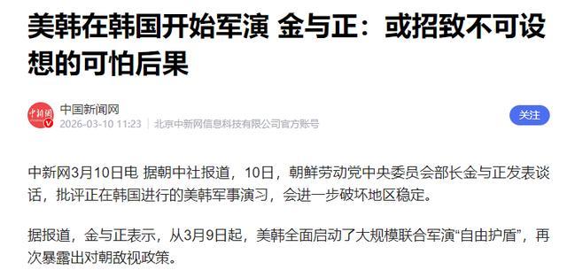 而就在演习刚拉开帷幕不到24小时,朝鲜金与正就发话了。