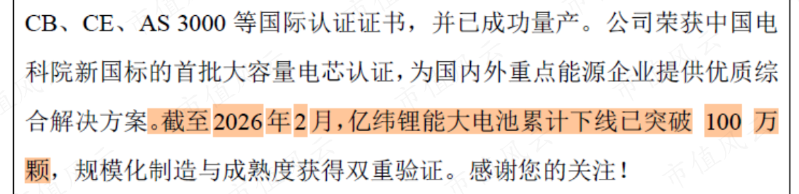 当大大都同业还在主攻280Ah、314Ah电芯时,亿纬锂能径直跳到了600Ah+。2022年10月,它率先发布628Ah超大容量电芯Mr.Big,2024年12月实现投产。纵容2026年2月,这款大电板累计下线超100万颗。